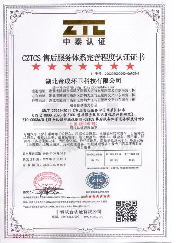 湖北帝成環(huán)衛(wèi)科技有限公司售后部組織相關(guān)部門進(jìn)行評審鎖定故障及安全事故原因,判定責(zé)任方,第一時間解決客戶損失。如問題原因由供應(yīng)商質(zhì)量問題導(dǎo)致,追訴供應(yīng)商責(zé)任,并責(zé)成供應(yīng)商對所有涉及車輛進(jìn)行更換維修,保證產(chǎn)品質(zhì)量,承擔(dān)客戶損失。并對此類故障提供分析報告,橫縱向展開排查同批次或同類型產(chǎn)品質(zhì)量,確保出廠零部件滿足車輛適用要求。