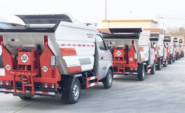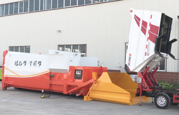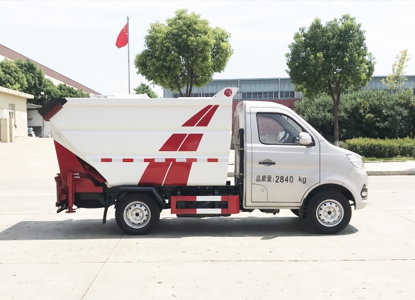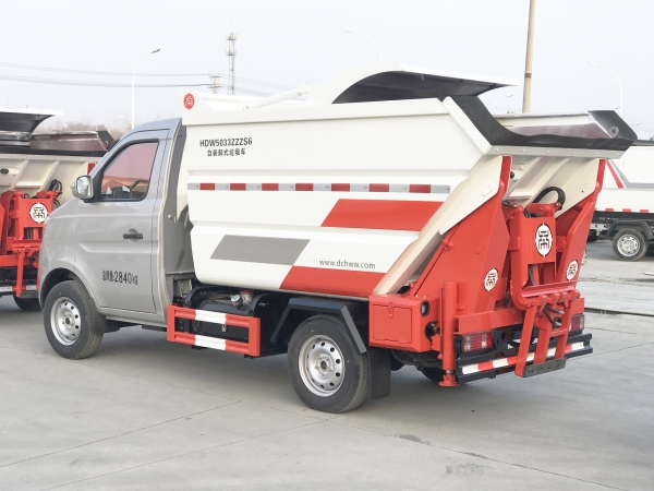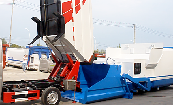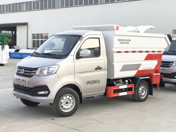 我公司生產(chǎn)的自裝卸式垃圾車是收集、中轉清理運輸垃圾,避免二次污染的新型環(huán)衛(wèi)車輛,其主要特點是垃圾收集方式簡便、高效、環(huán)保性好,整車利用效率高,廣泛適用于環(huán)衛(wèi)、市政、物業(yè)小區(qū)、垃圾多而集中的居民區(qū)、城市街道垃圾處理,均具有密封自卸功能,液壓操作,傾卸垃圾方便。 基于底盤的基礎上,加裝垃圾箱體、連接附件、防護欄及液壓系統(tǒng)等裝置。具有操作安全、使用性能穩(wěn)定、返修率低。本產(chǎn)品主要用于收集與轉運城市住宅小區(qū)、鄉(xiāng)鎮(zhèn)街道等產(chǎn)生的生活垃圾。整車小巧靈活,行動方便,適應人流密集的商業(yè)區(qū)域和道路交通情況較差的城鄉(xiāng)地區(qū)。本車配有后掛桶進料機構,在翻桶處操作,可與120L/240L標準塑料桶對接。整車具有自卸功能,卸料方便。 可與壓縮垃圾車、移動垃圾站進行對接卸料工作,實現(xiàn)垃圾不落地。