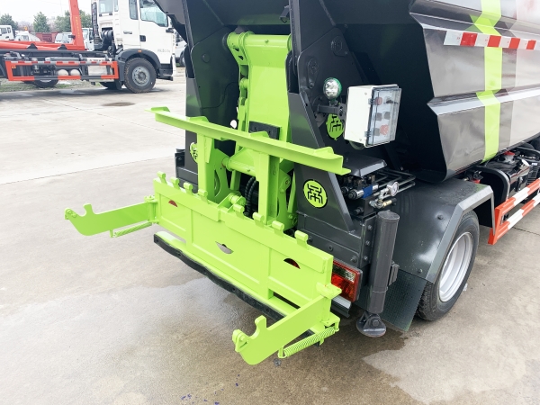自裝卸式垃圾車在底盤的基礎(chǔ)上,加裝垃圾箱體、連接附件、防護(hù)欄及液壓系統(tǒng)等裝置。具有操作安全、使用性能穩(wěn)定、返修率低、售后服務(wù)及時(shí)周到等特點(diǎn)。本產(chǎn)品主要用于收集與轉(zhuǎn)運(yùn)城市住宅小區(qū)、鄉(xiāng)鎮(zhèn)街道等產(chǎn)生的生活垃圾。整車小巧靈活,行動(dòng)方便,適應(yīng)人流密集的商業(yè)區(qū)域和道路交通情況較差的城鄉(xiāng)地區(qū)。本車配有后掛桶進(jìn)料機(jī)構(gòu),在翻桶處操作,可與120L/240L/660L標(biāo)準(zhǔn)塑料桶對(duì)接。整車具有自卸功能,卸料方便。結(jié)構(gòu)結(jié)實(shí)耐腐 船型箱體結(jié)構(gòu)實(shí)現(xiàn)100%無(wú)泄漏;刮板進(jìn)料+壓縮 壓縮效率高;高位舉升自卸結(jié)構(gòu),卸料干凈 對(duì)接方便;多功能翻桶進(jìn)料機(jī)構(gòu) 進(jìn)料快捷穩(wěn)定;液壓系統(tǒng)穩(wěn)定可靠;自動(dòng)化程度高,電液聯(lián)合控制。