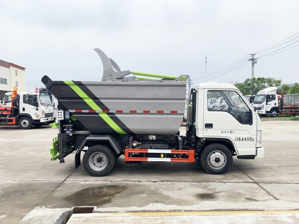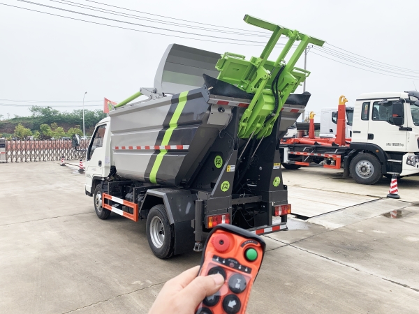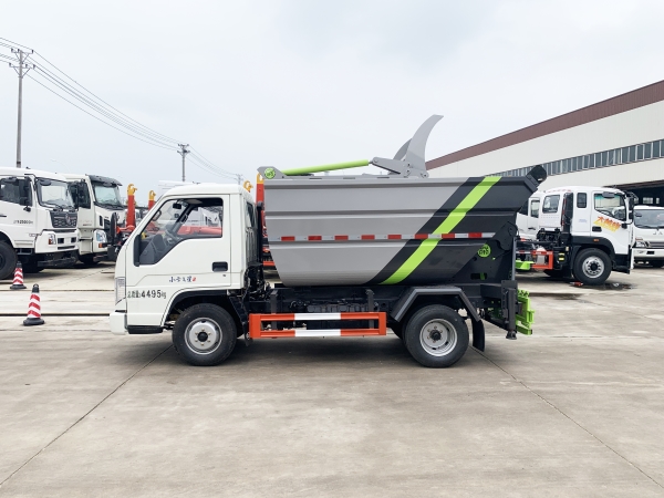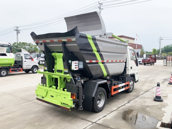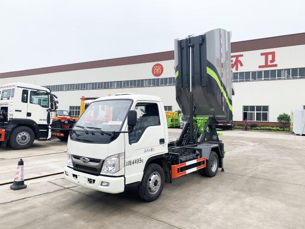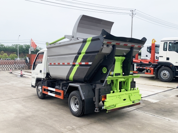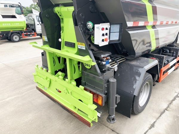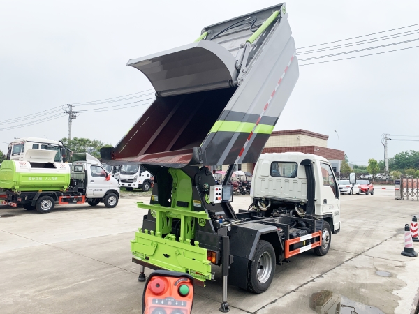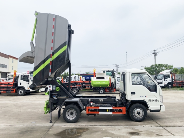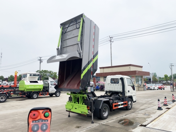 自裝卸式垃圾車在底盤的基礎上,加裝垃圾箱體、連接附件、防護欄及液壓系統(tǒng)等裝置。具有操作安全、使用性能穩(wěn)定、返修率低、售后服務及時周到等特點。本產(chǎn)品主要用于收集與轉(zhuǎn)運城市住宅小區(qū)、鄉(xiāng)鎮(zhèn)街道等產(chǎn)生的生活垃圾。整車小巧靈活,行動方便,適應人流密集的商業(yè)區(qū)域和道路交通情況較差的城鄉(xiāng)地區(qū)。本車配有后掛桶進料機構,在翻桶處操作,可與120L/240L/660L標準塑料桶對接。整車具有自卸功能,卸料方便。結(jié)構結(jié)實耐腐 船型箱體結(jié)構實現(xiàn)100%無泄漏;刮板進料+壓縮 壓縮效率高;高位舉升自卸結(jié)構,卸料干凈 對接方便;多功能翻桶進料機構 進料快捷穩(wěn)定;液壓系統(tǒng)穩(wěn)定可靠;自動化程度高,電液聯(lián)合控制。