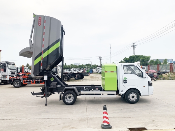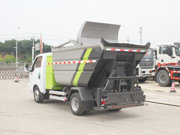 基于東風(fēng)途逸純電動(dòng)底盤,加裝垃圾箱體、連接附件、防護(hù)欄及液壓系統(tǒng)等裝置。零排放底噪音,具有操作安全、使用性能穩(wěn)定、返修率低、售后服務(wù)及時(shí)周到等特點(diǎn)。本產(chǎn)品主要用于收集與轉(zhuǎn)運(yùn)城市住宅小區(qū)、鄉(xiāng)鎮(zhèn)街道等產(chǎn)生的生活垃圾。整車小巧靈活,行動(dòng)方便,適應(yīng)人流密集的商業(yè)區(qū)域和道路交通情況較差的城鄉(xiāng)地區(qū)。本車配有后掛桶進(jìn)料機(jī)構(gòu),在翻桶處操作,可與120L/240L/660L標(biāo)準(zhǔn)塑料桶對(duì)接。整車具有自卸功能,卸料方便。