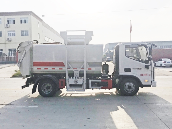 餐廚垃圾車是一種用于收集和運(yùn)輸生活垃圾、食品垃圾(泔水)及城市淤泥的專用車輛。采用側(cè)提桶上料方式進(jìn)行餐廚垃圾收集,采用自卸方式進(jìn)行卸料。先進(jìn)的弧形進(jìn)料口設(shè)計(jì)配上完美得液壓刮板系統(tǒng),使裝料更加快捷和順暢,尾門密封液壓鎖緊系統(tǒng),確保運(yùn)輸途中滴水不漏。 主要結(jié)構(gòu):汽車底盤、垃圾箱體、底架側(cè)提桶機(jī)構(gòu)、后門總成、液壓刮板系統(tǒng)、液壓系統(tǒng)和電控系統(tǒng)。液壓系統(tǒng)及電控系統(tǒng)由油泵、油缸、郵箱、電液閥、PLC單元、行程開關(guān)和開關(guān)等組成。同時(shí)本產(chǎn)品選配高壓清洗系統(tǒng),自動(dòng)稱重系統(tǒng)和衛(wèi)星定位互聯(lián)網(wǎng)系統(tǒng),自帶水箱,可以在現(xiàn)場(chǎng)對(duì)本車及垃圾桶進(jìn)行沖洗。是城鎮(zhèn)餐廚垃圾收集運(yùn)輸?shù)睦硐牍ぞ摺?/div>