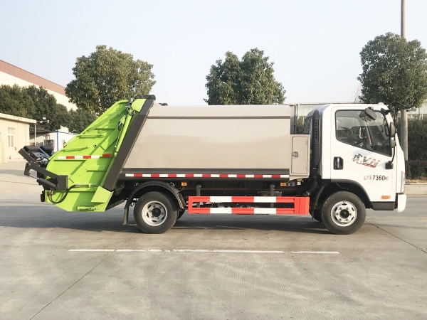 壓縮式垃圾車由密封式垃圾廂、液壓系統(tǒng)、操作系統(tǒng)組成。整車為全密封型,自行壓縮、自行傾倒、壓縮過程中的污水全部進(jìn)入污水廂,較為徹底的解決了垃圾運(yùn)輸過程中的二次污染的問題,避免了給人們帶來不便,關(guān)鍵部件采用進(jìn)口部件,具有壓力大、密封性好、操作方便、安全等優(yōu)點(diǎn)。 可選配后掛桶翻轉(zhuǎn)機(jī)構(gòu)或垃圾斗翻轉(zhuǎn)機(jī)構(gòu)。 專門用于收集城鎮(zhèn)居民生活垃圾和其他可壓縮垃圾的的環(huán)衛(wèi)專用車輛,壓縮式垃圾車由密封式垃圾箱、液壓系統(tǒng)、操作系統(tǒng)組成。整車為全密封型,自行壓縮、自行傾倒、壓縮過程中的污水全部進(jìn)入污水箱,較為徹底的解決了垃圾運(yùn)輸過程中的二次污染的問題,關(guān)鍵元器件采用進(jìn)口件,具有壓力大、密封性好、操作方便、安全省力等優(yōu)點(diǎn)。 主要有后裝壓縮式垃圾車和測(cè)裝壓縮式垃圾車,其中后裝壓縮式垃圾車可選配后掛桶收集裝置、鏟斗收集裝置、擺臂收集裝置、掛鐵通收集裝置,用戶可以根據(jù)不同需要選擇不同的收集裝置。