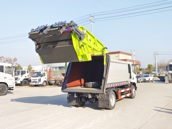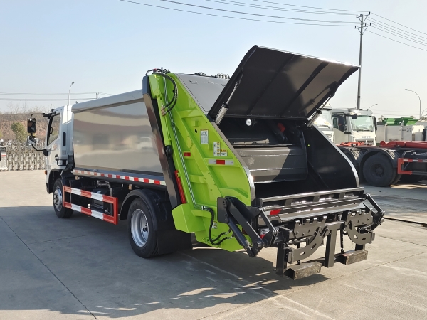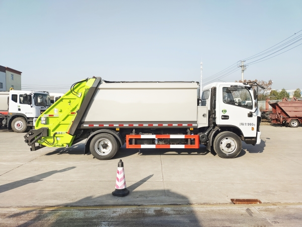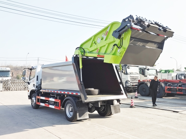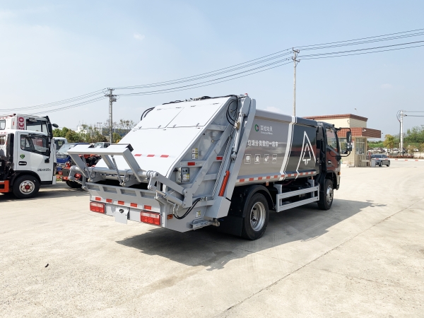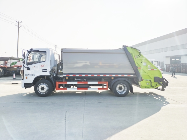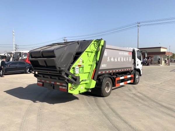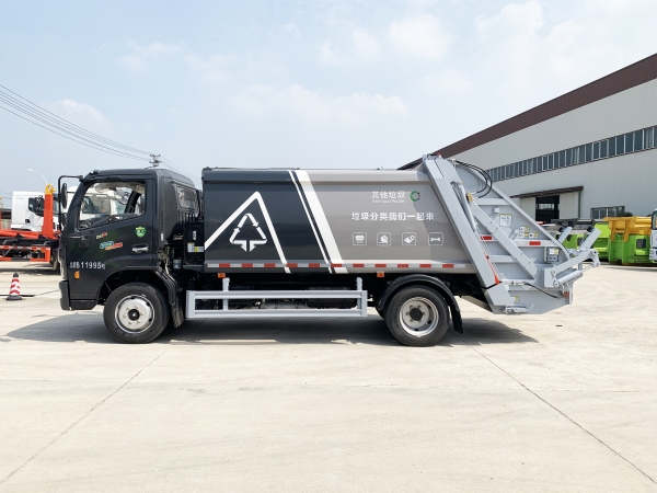 壓縮式垃圾車由密封式垃圾廂、液壓系統(tǒng)、操作系統(tǒng)組成。整車為全密封型,自行壓縮、自行傾倒、壓縮過程中的污水全部進(jìn)入污水廂,較為徹底的解決了垃圾運(yùn)輸過程中的二次污染的問題,避免了給人們帶來不便,關(guān)鍵部件采用進(jìn)口部件,具有壓力大、密封性好、操作方便、安全等優(yōu)點(diǎn)。 可選配后掛桶翻轉(zhuǎn)機(jī)構(gòu)或垃圾斗翻轉(zhuǎn)機(jī)構(gòu)。 專門用于收集城鎮(zhèn)居民生活垃圾和其他可壓縮垃圾的的環(huán)衛(wèi)專用車輛,壓縮式垃圾車由密封式垃圾箱、液壓系統(tǒng)、操作系統(tǒng)組成。整車為全密封型,自行壓縮、自行傾倒、壓縮過程中的污水全部進(jìn)入污水箱,較為徹底的解決了垃圾運(yùn)輸過程中的二次污染的問題,關(guān)鍵元器件采用進(jìn)口件,具有壓力大、密封性好、操作方便、安全省力等優(yōu)點(diǎn)。 主要有后裝壓縮式垃圾車和測裝壓縮式垃圾車,其中后裝壓縮式垃圾車可選配后掛桶收集裝置、鏟斗收集裝置、擺臂收集裝置、掛鐵通收集裝置,用戶可以根據(jù)不同需要選擇不同的收集裝置。
