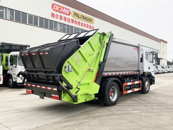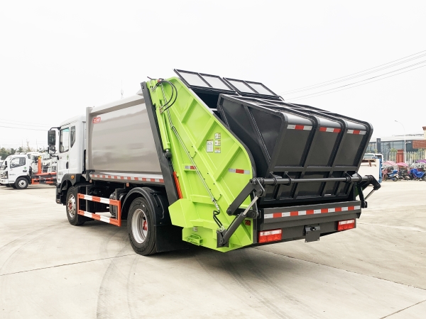 壓縮式垃圾車由密封式垃圾廂、液壓系統(tǒng)、操作系統(tǒng)組成。整車為全密封型,自行壓縮、自行傾倒、壓縮過程中的污水全部進入污水廂,較為徹底的解決了垃圾運輸過程中的二次污染的問題,避免了給人們帶來不便,關(guān)鍵部件采用進口部件,具有壓力大、密封性好、操作方便、安全等優(yōu)點。 可選配后掛桶翻轉(zhuǎn)機構(gòu)或垃圾斗翻轉(zhuǎn)機構(gòu)。 專門用于收集城鎮(zhèn)居民生活垃圾和其他可壓縮垃圾的的環(huán)衛(wèi)專用車輛,壓縮式垃圾車由密封式垃圾箱、液壓系統(tǒng)、操作系統(tǒng)組成。整車為全密封型,自行壓縮、自行傾倒、壓縮過程中的污水全部進入污水箱,較為徹底的解決了垃圾運輸過程中的二次污染的問題,關(guān)鍵元器件采用進口件,具有壓力大、密封性好、操作方便、安全省力等優(yōu)點。 主要有后裝壓縮式垃圾車和測裝壓縮式垃圾車,其中后裝壓縮式垃圾車可選配后掛桶收集裝置、鏟斗收集裝置、擺臂收集裝置、掛鐵通收集裝置,用戶可以根據(jù)不同需要選擇不同的收集裝置。