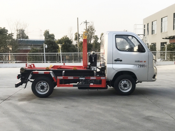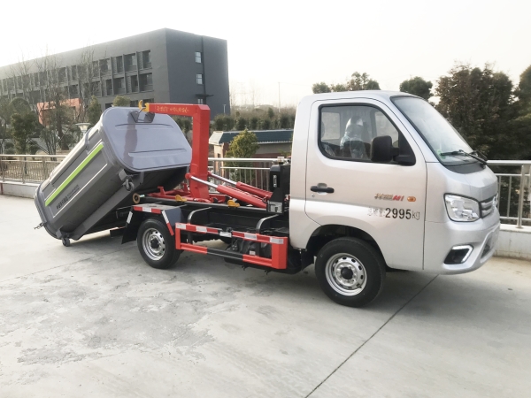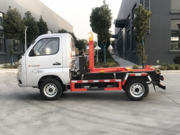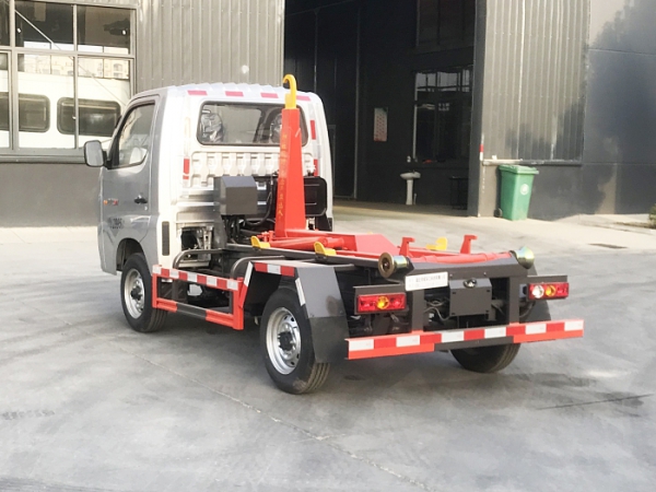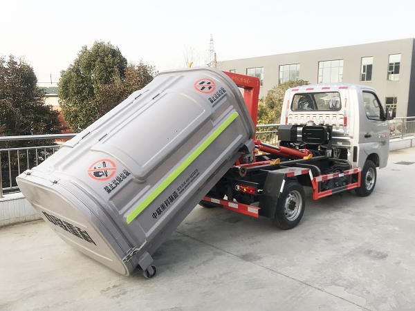 車廂可卸載式垃圾車,又稱勾臂式垃圾車、拉臂式垃圾車。該車廣泛適用與城市街道學校垃圾處理,可一車配備多個斗,各個垃圾點放置多個,帶自卸功能,液壓操作,方便傾倒。在平日里可將車載垃圾箱放置到各個垃圾收集站,待垃圾收集滿后,該車可直接開赴至垃圾站,通過液壓系統(tǒng)的操控,可將垃圾車后座上加裝的勾臂放下,掛住站內(nèi)垃圾箱前端的連接點,將垃圾箱拉至車體的后座上,此時即可啟動車輛,將垃圾運送至垃圾處理站內(nèi),進行自卸式傾倒。該車主要的優(yōu)點就是可一車配多斗,一輛車就可以維持數(shù)個垃圾收集站的運轉(zhuǎn),效率高,且箱體為密封式設計,不會造成二次污染。