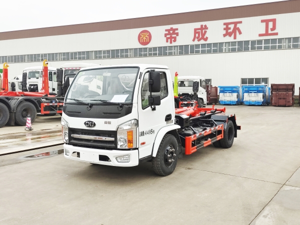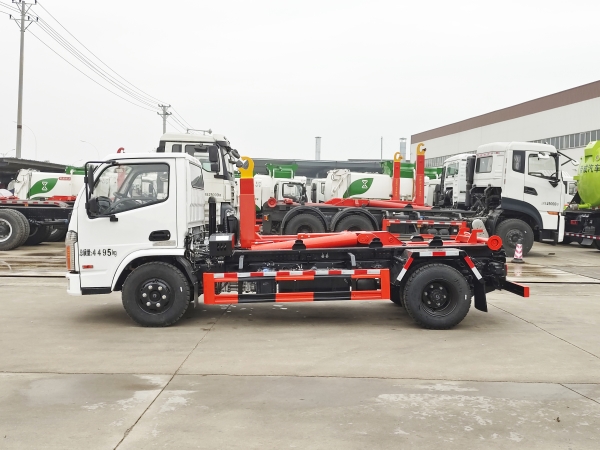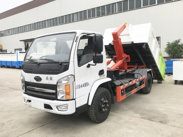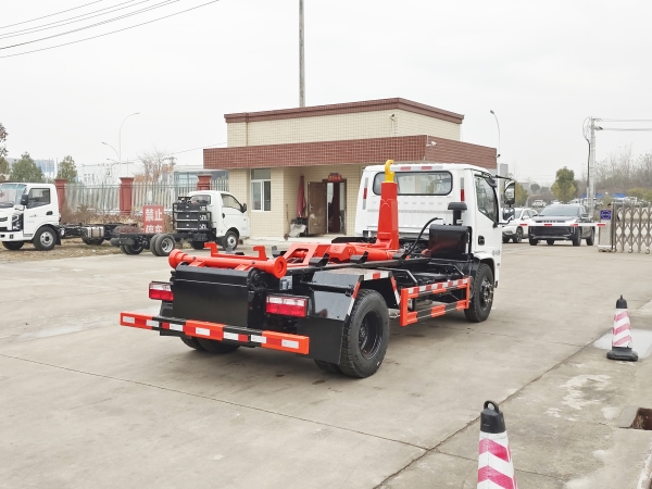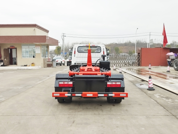 車廂可卸載式垃圾車,又稱勾臂式垃圾車、拉臂式垃圾車。該車廣泛適用與城市街道學(xué)校垃圾處理,可一車配備多個斗,各個垃圾點(diǎn)放置多個,帶自卸功能,液壓操作,方便傾倒。在平日里可將車載垃圾箱放置到各個垃圾收集站,待垃圾收集滿后,該車可直接開赴至垃圾站,通過液壓系統(tǒng)的操控,可將垃圾車后座上加裝的勾臂放下,掛住站內(nèi)垃圾箱前端的連接點(diǎn),將垃圾箱拉至車體的后座上,此時即可啟動車輛,將垃圾運(yùn)送至垃圾處理站內(nèi),進(jìn)行自卸式傾倒。該車主要的優(yōu)點(diǎn)就是可一車配多斗,一輛車就可以維持?jǐn)?shù)個垃圾收集站的運(yùn)轉(zhuǎn),效率高,且箱體為密封式設(shè)計,不會造成二次污染。