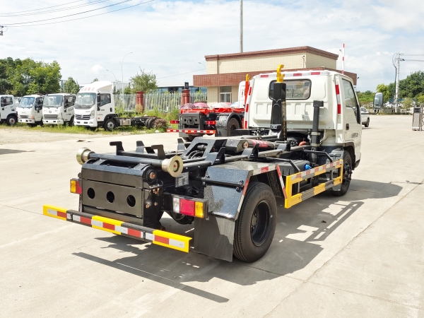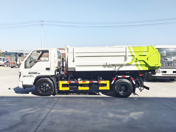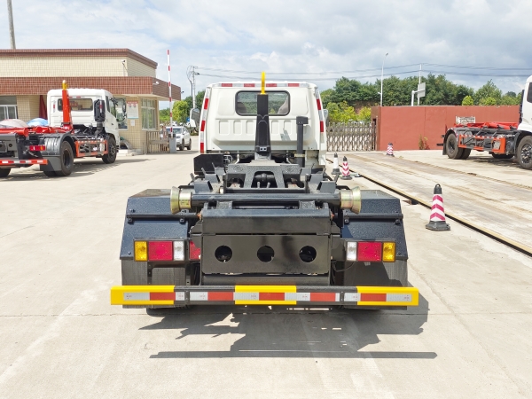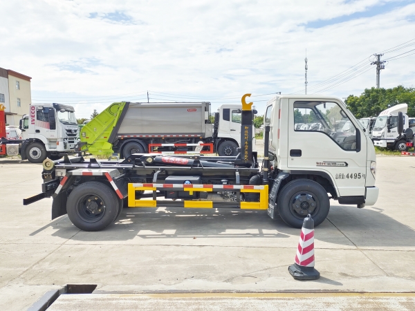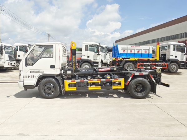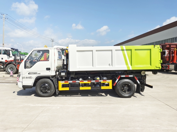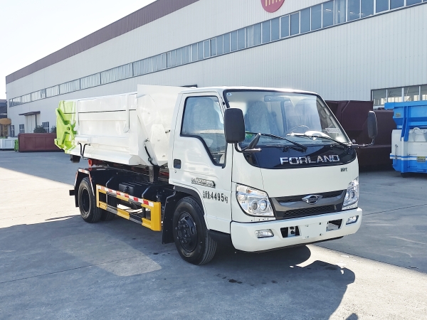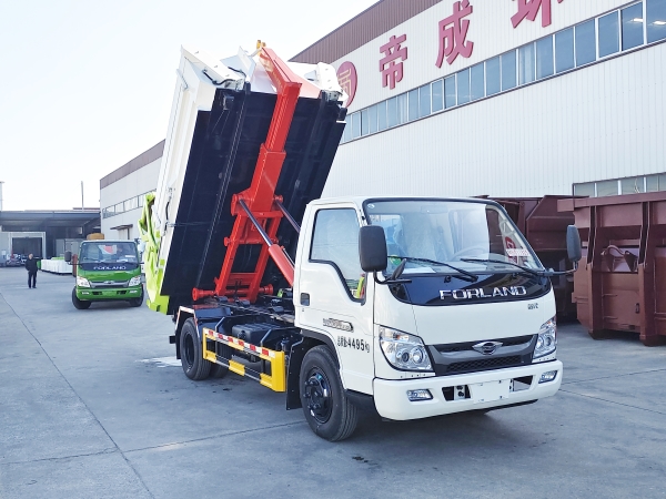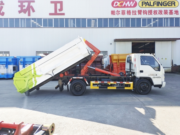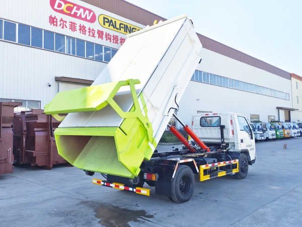 車廂可卸載式垃圾車,又稱勾臂式垃圾車、拉臂式垃圾車。該車廣泛適用與城市街道學(xué)校垃圾處理,可一車配備多個斗,各個垃圾點放置多個,帶自卸功能,液壓操作,方便傾倒。在平日里可將車載垃圾箱放置到各個垃圾收集站,待垃圾收集滿后,該車可直接開赴至垃圾站,通過液壓系統(tǒng)的操控,可將垃圾車后座上加裝的勾臂放下,掛住站內(nèi)垃圾箱前端的連接點,將垃圾箱拉至車體的后座上,此時即可啟動車輛,將垃圾運送至垃圾處理站內(nèi),進行自卸式傾倒。該車主要的優(yōu)點就是可一車配多斗,一輛車就可以維持數(shù)個垃圾收集站的運轉(zhuǎn),效率高,且箱體為密封式設(shè)計,不會造成二次污染。