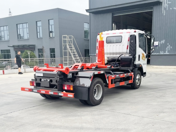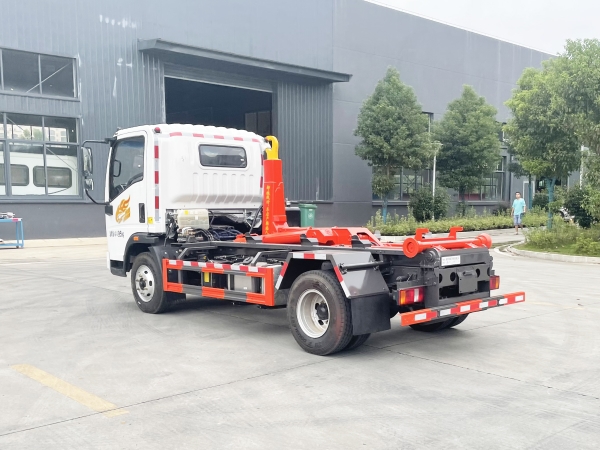 車廂可卸載式垃圾車,又稱勾臂式垃圾車、拉臂式垃圾車。該車廣泛適用與城市街道學(xué)校垃圾處理,可一車配備多個(gè)斗,各個(gè)垃圾點(diǎn)放置多個(gè),帶自卸功能,液壓操作,方便傾倒。在平日里可將車載垃圾箱放置到各個(gè)垃圾收集站,待垃圾收集滿后,該車可直接開赴至垃圾站,通過液壓系統(tǒng)的操控,可將垃圾車后座上加裝的勾臂放下,掛住站內(nèi)垃圾箱前端的連接點(diǎn),將垃圾箱拉至車體的后座上,此時(shí)即可啟動(dòng)車輛,將垃圾運(yùn)送至垃圾處理站內(nèi),進(jìn)行自卸式傾倒。該車主要的優(yōu)點(diǎn)就是可一車配多斗,一輛車就可以維持?jǐn)?shù)個(gè)垃圾收集站的運(yùn)轉(zhuǎn),效率高,且箱體為密封式設(shè)計(jì),不會(huì)造成二次污染。