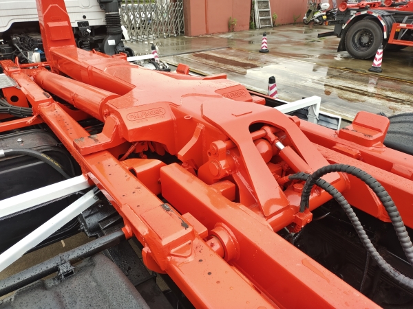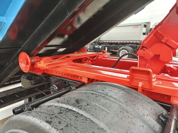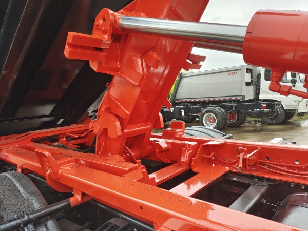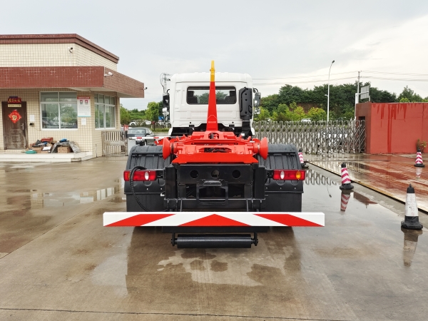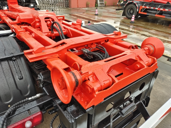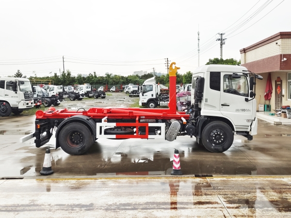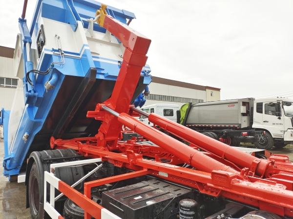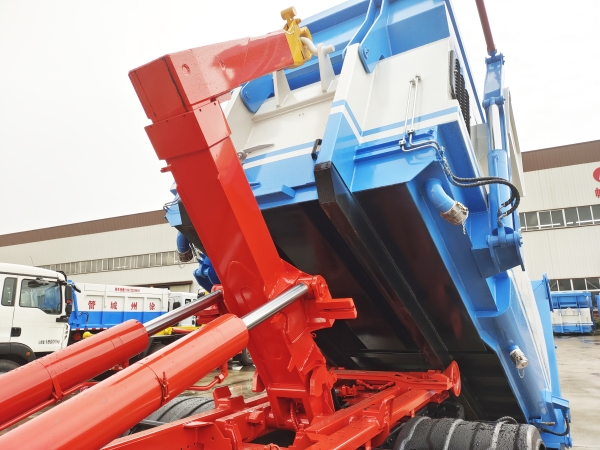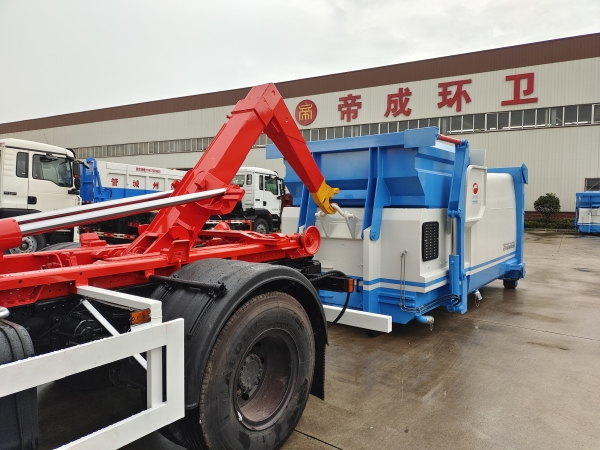 車廂可卸載式垃圾車,又稱勾臂式垃圾車、拉臂式垃圾車。該車廣泛適用與城市街道學校垃圾處理,可一車配備多個斗,各個垃圾點放置多個,帶自卸功能,液壓操作,方便傾倒。在平日里可將車載垃圾箱放置到各個垃圾收集站,待垃圾收集滿后,該車可直接開赴至垃圾站,通過液壓系統的操控,可將垃圾車后座上加裝的勾臂放下,掛住站內垃圾箱前端的連接點,將垃圾箱拉至車體的后座上,此時即可啟動車輛,將垃圾運送至垃圾處理站內,進行自卸式傾倒。該車主要的優(yōu)點就是可一車配多斗,一輛車就可以維持數個垃圾收集站的運轉,效率高,且箱體為密封式設計,不會造成二次污染。