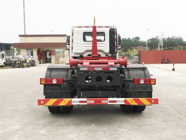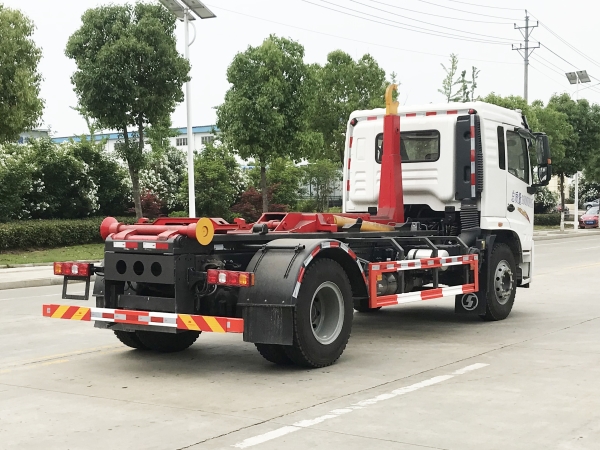 車廂可卸載式垃圾車,又稱勾臂式垃圾車、拉臂式垃圾車。該車廣泛適用與城市街道學校垃圾處理,可一車配備多個斗,各個垃圾點放置多個,帶自卸功能,液壓操作,方便傾倒。在平日里可將車載垃圾箱放置到各個垃圾收集站,待垃圾收集滿后,該車可直接開赴至垃圾站,通過液壓系統(tǒng)的操控,可將垃圾車后座上加裝的勾臂放下,掛住站內(nèi)垃圾箱前端的連接點,將垃圾箱拉至車體的后座上,此時即可啟動車輛,將垃圾運送至垃圾處理站內(nèi),進行自卸式傾倒。該車主要的優(yōu)點就是可一車配多斗,一輛車就可以維持數(shù)個垃圾收集站的運轉(zhuǎn),效率高,且箱體為密封式設(shè)計,不會造成二次污染。